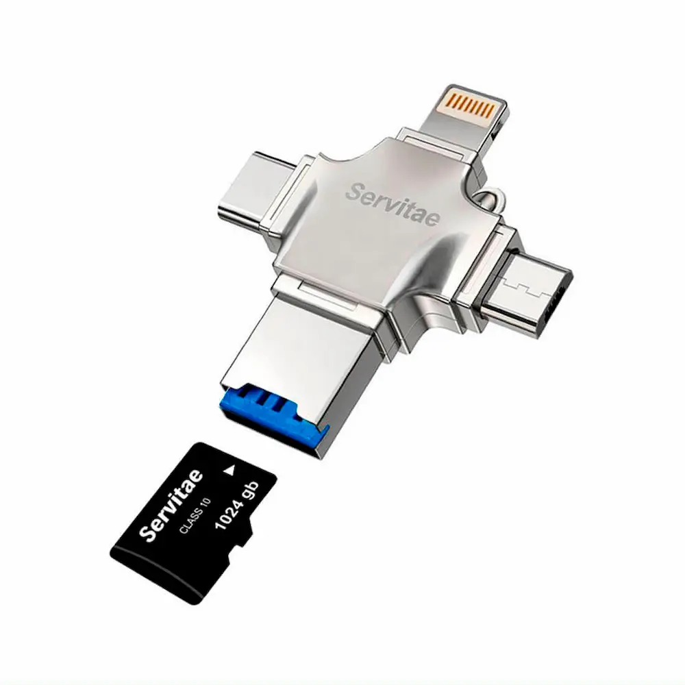 Servitae Lector Otg 4en1 Usb3.0 C Lightning Microusb Microsd