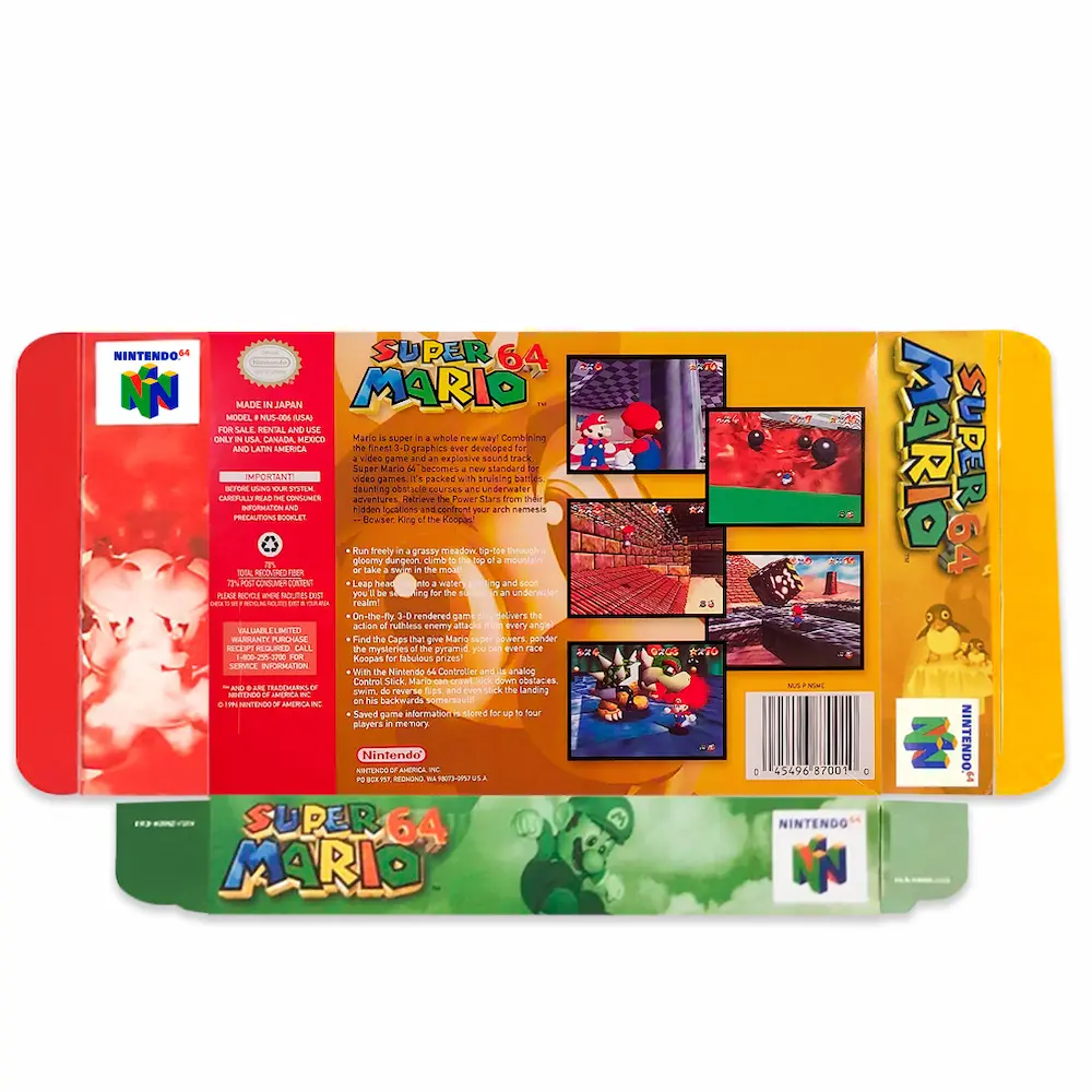 • Protección Superior: Protege tus valiosas cajas de juegos retro, como Super Mario 64, de polvo, arañazos y daños.