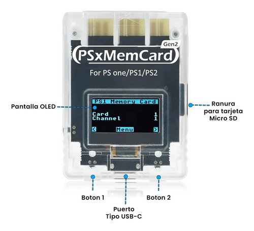 Tarjeta De Memoria Ps1/ps2 Psxmemcard Gen2 Pantalla Oled